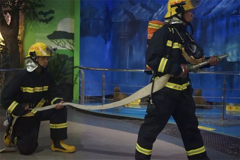 演练中,随着消防警报的响起,在消防广播的循环播放中,消防控制室人员迅速启动消防控制柜,,并将电梯迫降至首层;展厅工作人员指挥“观众”用毛巾捂住口鼻、弯腰沿疏散通道有序撤离到安全区域;江汉消防中队“接警”后立即赶到现场,携带灭火设备,到达预设火灾点,演示灭火器及消防栓灭火作业。整个演练组织指挥到位,人员分工明确,疏散逃生及灭火自救展开有序,达到了预想的效果。